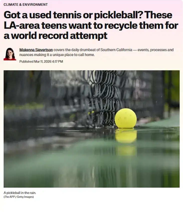 A group of 12 high schoolers in Pacific Palisades, California, have launched a world-record attempt to recycle old tennis and pickleballs.