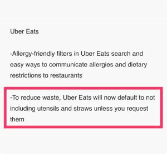 We already convinced Uber Eats and Postmates to switch the default setting in their food delivery applications by making plastic cutlery an OPT-IN feature, available only upon request. Postmates just released data that since joining #CutOutCutlery in October 2019 they saved 122 MILLION packs of plastic cutlery from entering the waste stream. This equates to $3.2 MILLION DOLLARS in savings for restaurants. (We are still waiting on numbers from Uber Eats impact but we understand that it is significantly more than Postmates, as they just delivered their billionth order.)